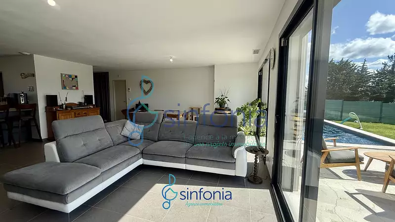 À seulement 4 km d'Uzès, découvrez cette maison de plain-pied neuve (2024), dans un environnement paisible avec vue dégagée sur les vignes. Commerces et école a proxilités. Édifiée sur un terrain clos de 543 m2, elle offre une surface habitable de 110 m2 parfaitement agencée : Une pièce de vie spacieuse et lumineuse, sublimée par deux grandse baies vitrées donnant sur la terrasse Une cuisine moderne, aménagée et équipée avec cellier. 4 chambres confortables, idéales pour accueillir famille ou télétravail Salle d'eau et toilette indépendant Un garage attenant Profitez pleinement de l'extérieur grâce à une terrasse exposée plein sud et une piscine chauffée avec volet roulant intégré, parfaite pour les beaux jours ! Confort moderne au rendez-vous : Chauffage gainable réversible (climatisation) Panneaux solaires Maison connectée Adoucisseur d'eau Construction en brique Vente suite à une mutation ? Aucun travaux à prévoir, posez vos valises ! Une opportunité rare à deux pas d'Uzès, alliant confort, modernité et cadre naturel. Votre agent immobilier Sinfonia Immobilier Christelle Martinez 0623352996 Selon l'article L.561.5 du Code Monétaire et Financier, pour l'organisation de la visite, la présentation d'une pièce d'identité vous sera demandée. Les informations sur les risques auxquels ce bien est exposé sont disponibles sur le site Géorisques : www.georisques.gouv.fr Prix net, hors frais notariés, d'enregistrement et de publicité foncière. Document non contractuel.