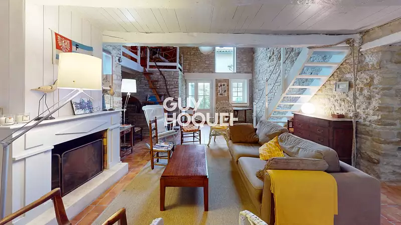 Dans le charmant quartier d'Ars-en-Ré, découvrez cette maison de 110 m², un véritable écrin de douceur. Proposée à 787 500 euros, elle offre 6 pièces, dont 4 chambres, idéales pour accueillir famille et projets. Au rez-de-chaussée, profitez d'un salon-séjour avec cheminée, une cuisine, une salle de bains, un bureau, un coin mezzanine et un WC. A l'étage, un palier dessert 4 chambres, dont 2 mansardées. Cette demeure bénéficie aussi d'une annexe, d'une terrasse sous préau, d'une cour pavée et d'un stationnement privé. Idéalement située, à proximité des écoles, boulangeries, pharmacies et restaurants, elle allie tranquillité et commodités. Une opportunité rare à ne pas manquer ! Contactez l'agence Guy Hoquet ARS EN RÉ pour organiser une visite. Les informations sur les risques auxquels ce bien est exposé sont disponibles sur le site Géorisques : www.georisques.gouv.fr. Tifany SAMOYAULT (EI) Agent Commercial - Numéro RSAC : - .