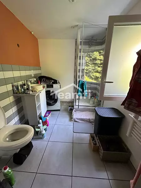 Une salle d'eau avec coin buanderie