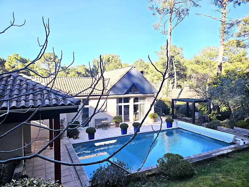 Square habitat BISCARROSSE groupe CREDIT AGRICOLE vous présente à la vente, aux portes du Bassin d'Arcachon une maison entre nature et élégance avec la vue sur le green du Golf de Biscarrosse et proche du lac. Nichée dans un cadre verdoyant sans vis à vis, au coeur du domaine du Golf de Biscarrosse, cette villa de 110m² allie charme, tranquillité et séduction! Avec son séjour cathédrale baigné de lumière, ses 3 chambres cette maison convient a tous types de projets. Profitez d'une terrasse avec piscine chauffée 5x10m, parfaite pour des moments de convivialité et des plusieurs espaces de relaxation avec une vue imprenable sur le parcours. La proximité immédiate du lac de Biscarrosse permet également de savourer des instants privilégiés entre baignades et balades.