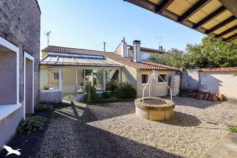 COGNAC Maison de plain-pied offrant une belle pièce à vivre lumineuse donnant sur une véranda et une cour, deux chambres, cuisine. Grand garage. Combles aménageables. Quartier calme et recherché, proche centre ville, écoles et commerces.