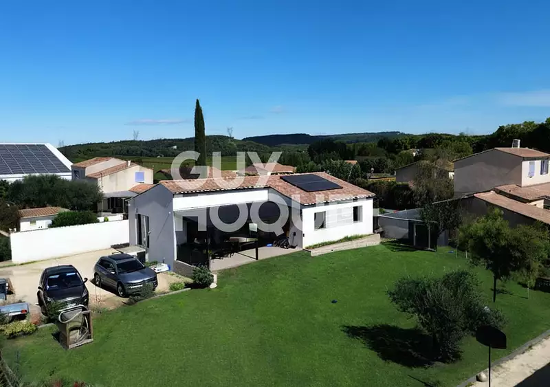 Maison T5 au calme d'environ 110 m² et de 1 026 m² de terrain. Elle dispose d'une cuisine A/E, trois chambres dont une avec dressing, une salle d'eau et un WC. Maison construite en 2014 est agencée d'un cellier. elle dispose d'un garage et un WC. Un chauffage gainable est installé dans la maison. Doriane PAZZI (EI) Agent Commercial - Numéro RSAC : 908 925 704 - NIMES.