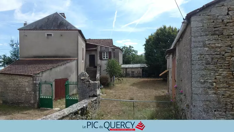 A VENDRE, à 10min à l'ouest de Cahors, ancien corps de ferme situé dans un petit hameau, sur 7000m2 de terrain environ. Cet ensemble situé en position dominante comprend: