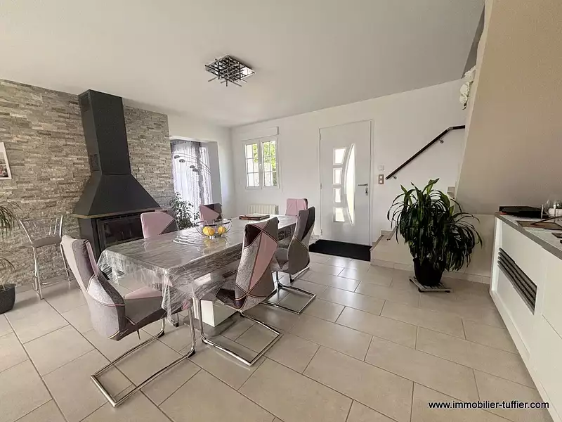 Pavillon composé d'une cuisine ouverte sur une salle à manger offrant une pièce de vie de plus de 45 m² donnant sur la terrasse et le terrain -