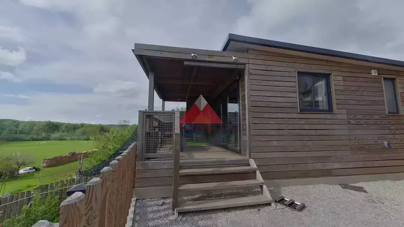 Le second bien est un chalet de 35m² disposant d'une terrasse couverte, d'une cuisine équipée ouverte sur pièce de vie, de deux chambres, d'une salle d'eau et d'un WC séparé.