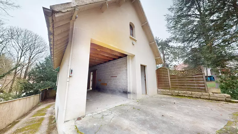 Le sous-sol en partie enterré et de plain pied offrant un grand garage et atelier de 59m2.