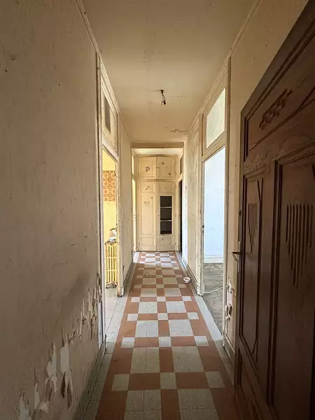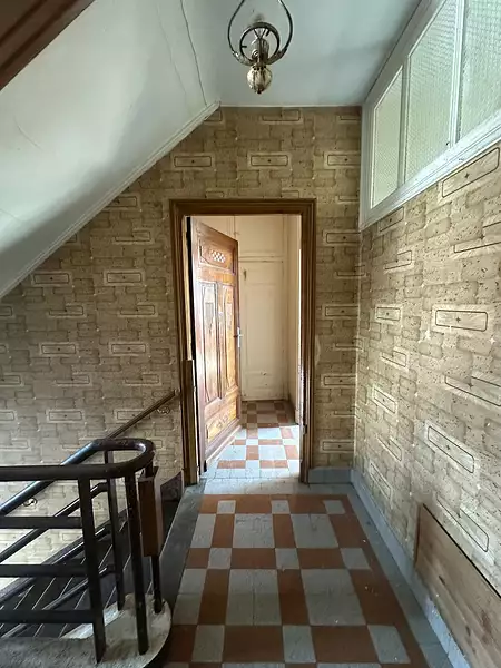 1er étage, un escalier, un palier, un couloir, 4 chambres, carrelahe et parquet, un séjour, une cuisine, une salle d'eau.Grenier au dessus.