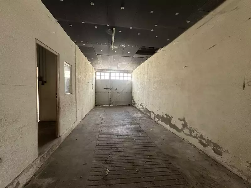 RDC d'une entrée, dégagement, deux garages et un atelier.