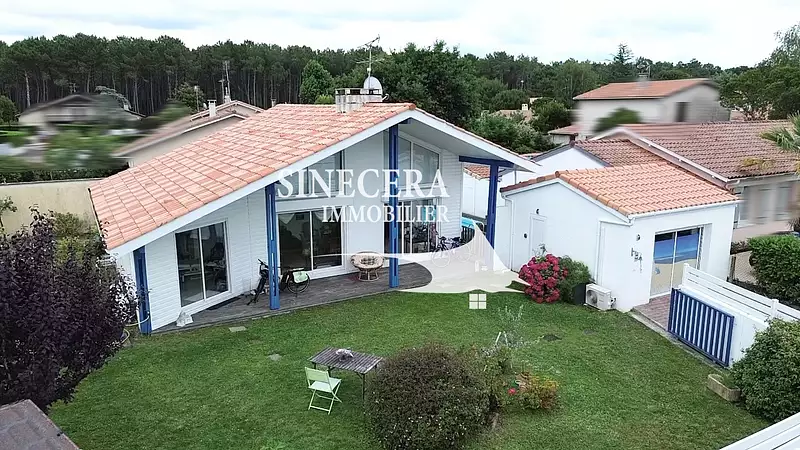 La Teste-De-Buch, dans le quartier très recherché de la pinède de conteau, superbe maison individuelle avec piscine. Composée d'une entrée avec placard, un salon séjour lumineux sous rampant avec insert, une cuisine américaine, une chambre et une salle de bains avec baignoire et douche. A l'étage, mezzanine, 2 chambres.