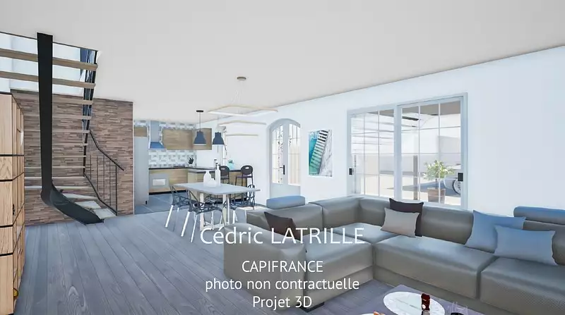 La maison dispose d'une cour privative entièrement close et indépendante, idéale pour profiter d'un extérieur en toute intimité. Au rez-de-chaussée, une grande pièce de vie d'environ 50 m² accueille une cuisine neuve entièrement équipée, ouverte sur un séjour spacieux et lumineux, offrant un espace convivial pour la famille et les amis.