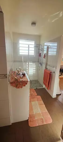 Espace nuit : Une suite parentale climatisée avec dressing, salle d'eau attenante avec douche à l'italienne et WC. Une deuxième chambre climatisée avec placard de rangement mural et une troisième chambre climatisée également avec placard mural. Une salle d'eau indépendante avec douche à l'italienne et WC.