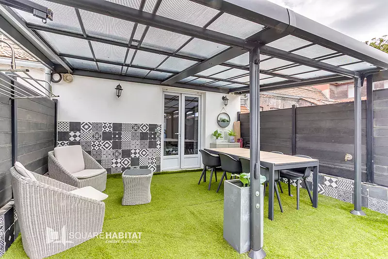 EXCLUSIVITE: LILLE WAZEMMES: Maison d'environ 110m² sans travaux, située à proximité de la place du marché, des commerces, à la jonction des métros Montebello, Cormontaigne et Wazemmes. Elle est composée d'un hall d'entrée, de wc séparé, puis d'une salle à manger coté rue, un vaste séjour suivi d'une cuisine équipée ouverte. Une cour sur l'arrière amenant à une superbe terrasse de 23m² sans vis à vis. A l'étage, une chambre sur rue, une salle de bain avec wc, une 2ème chambre sur l'arrière. Deux chambres au dernier étage. Une cave au sous-sol. "Les informations sur les risques auxquels ce bien est exposé sont disponibles sur le site Géorisques : www.georisques.gouv.fr". SQUARE HABITAT LILLE VAUBAN.