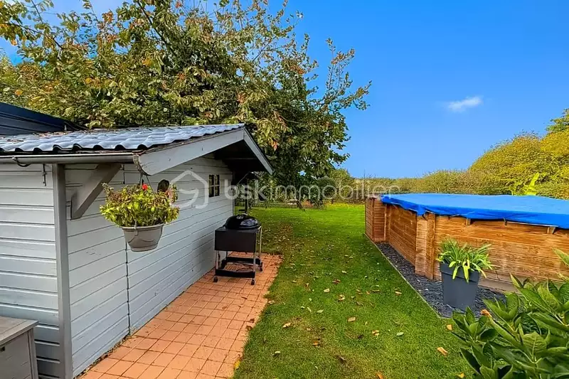 - 1 piscine hors sol avec système de filtration/chauffée, sur un terrain sans vis à vis.