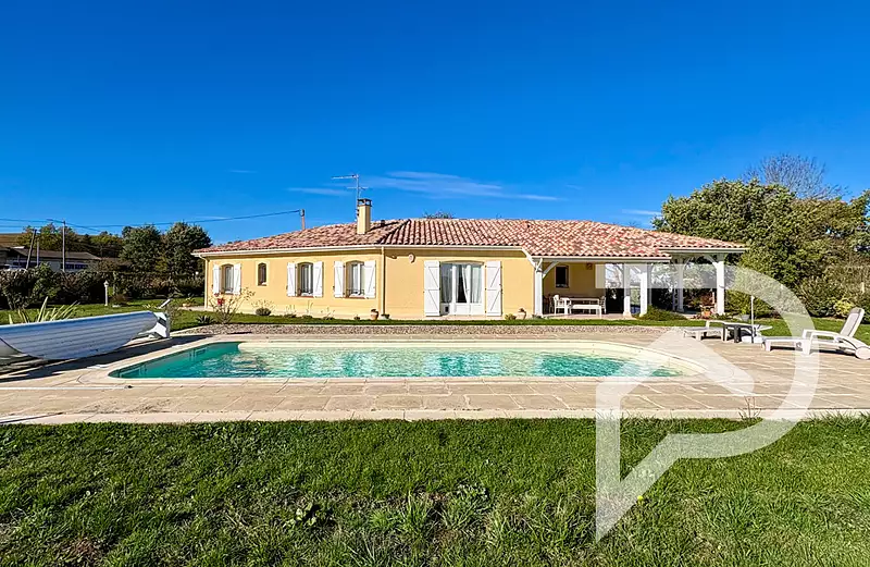 Située dans un environnement calme et verdoyant, cette agréable maison de plain-pied de 110 m² offre un cadre de vie pratique, confortable et adapté aussi bien à une famille qu'à des personnes à mobilité réduite. Dès l'entrée, vous serez séduit par une grande pièce de vie lumineuse, ouverte sur une vaste terrasse couverte de 50 m², idéale pour profiter des beaux jours et des repas en extérieur. Une cuisine indépendante, entièrement aménagée et équipée, communique directement avec le garage attenant, disposant d'un coin buanderie fonctionnel. Côté nuit, un couloir distribue quatre chambres, offrant une bonne répartition des espaces, ainsi qu'une salle de bain entièrement refaite à neuf, moderne et confortable. Les extérieurs proposent un grand parking goudronné, pratique pour accueillir plusieurs véhicules, et un jardin clôturé d'environ 2 865 m² avec une belle piscine sécurisée, parfait pour se détendre en toute intimité. Un puits en pierre et un bel espace vert permettent également de créer un potager ou d'y planter des arbres fruitiers. La maison bénéficie d'une vue dégagée sur la campagne, d'un cadre paisible, tout en restant à proximité immédiate d'Auch et de ses commodités. Un arrêt de bus de la ville se trouve à proximité. Ce bien est idéal pour : Profiter d'une belle terrasse couverte et d'un jardin arboré. Bénéficier du calme de la campagne à seulement 10 minutes d'Auch, avec un accès rapide par la rocade. Investir dans une maison entièrement remise au goût du jour, habitable immédiatement.