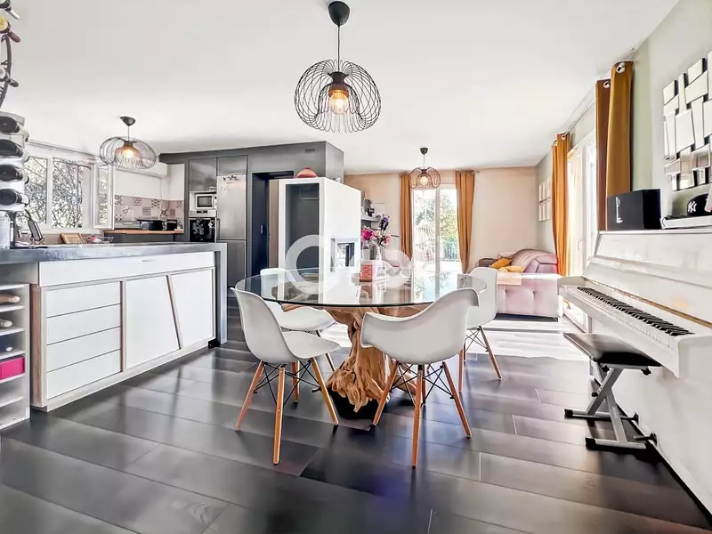 La pièce de vie lumineuse avec cuisine aménagée-équipée s'ouvre sur une grande terrasse plein sud. Trois chambres, une salle de bains, un WC indépendant et une buanderie composent l'espace nuit.