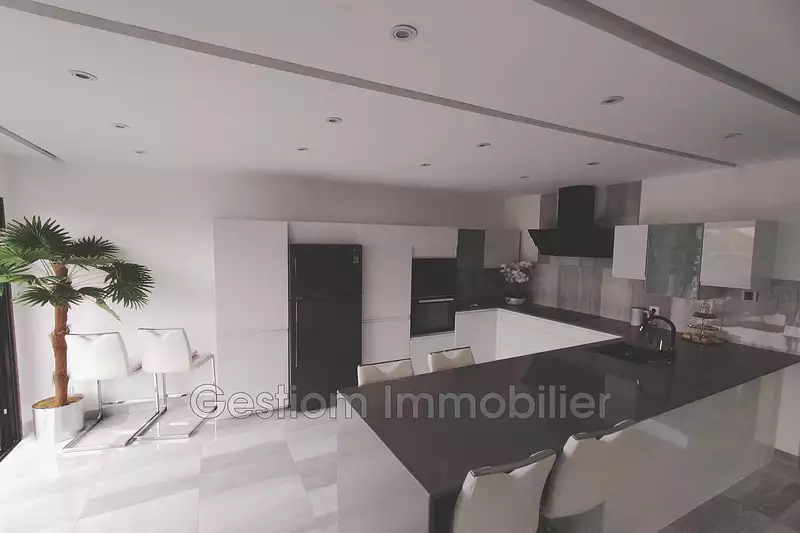 - Une cuisine US entièrement aménagée équipée ( Plan de travail en silestone) donnant accès sur l'extérieur