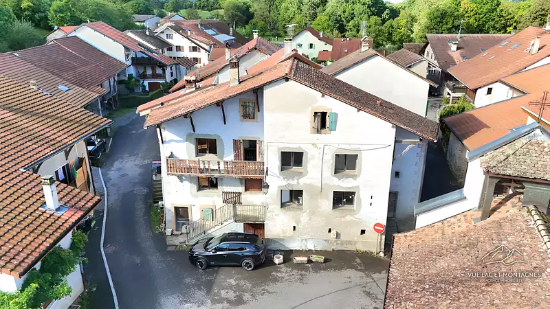 L'agence immobilière Vue Lac et Montagnes vous présente dans le hameau de Brécorens, sur la commune de Perrignier, une maison de village d'une surface de 109.50m² habitables et d'une grange attenante pour une surface totale d'environ 279.5 m² aménageables à très fort potentiel de rénovation. La bâtisse principale se compose actuellement d'un rez-de-chaussée d'environ 50 m² , composée de plusieurs caves et d'un espace permettant la création d'un studio indépendant. Au premier étage, on trouve un hall d'entrée avec un espace cuisine, un salon, une salle de bains avec wc et une chambre. Le deuxième étage comprend un dégagement donnant sur une pièce ouverte, ainsi que deux autres chambres. Les combles restent aménageables, ainsi que la grange vous offrant un volume intéressant pour la création d'espaces supplémentaires. Un terrain de 239 m² est vendu avec la maison, situé à quelques mètres, vous donnant la possibilité de bénéficier d'un espace jardin et la possibilité d'aménager plusieurs places de parking. Cette propriété offre une opportunité rare grâce à un permis de construire déjà déposé et accepté, avec un potentiel de 279.5 m² habitables, prévoyant l'aménagement de quatre grand appartements. Le permis est valable jusqu'au 24 août 2027, la taxe d'aménagement ainsi que la redevance archéologique ont déjà été réglées. De plus, une déclaration préalable a été acceptée par la mairie pour la création des places de parking. Ce bien séduira à la fois les investisseurs et les amateurs de rénovation, souhaitant redonner vie à une bâtisse ancienne dans un environnement calme et authentique. Son emplacement est idéal : à proximité immédiate du centre de Perrignier, de la gare ferroviaire et du Léman Express (liaison directe avec Thonon-les-Bains et Genève), ainsi que des axes routiers et du lac Léman. Vous souhaitez organiser une visite ? Contactez votre agence immobilière Vue lac et Montagnes pour votre futur projet immobilier à Perrignier ! *Vidéo de présentation sur demande