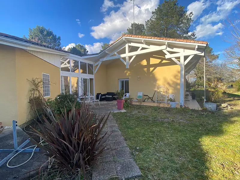 Dans le centre de PISSOS, commune avec toutes commodités à 30min des plages et 45min de Bordeaux, visitez cette maison contemporaine construite en 2005. Excellent état d'entretien, chauffage central gaz très économique. De plain pied, elle dispose d'une entrée avec placards, donnant sur salon séjour de 39.97m², cuisine aménagée et équipée avec cellier attenant, veranda de 11.21m², buanderie, avec double garage attenant de 35m². Un couloir dessert une grande salle d'eau de 8.17m² avec douche à l'italienne et trois chambres. Terrain clos et arboré de 1271m² en impasse sans voisin direct. VISITEZ LA AU PLUS VITE !! Visitez là au plus vite !!