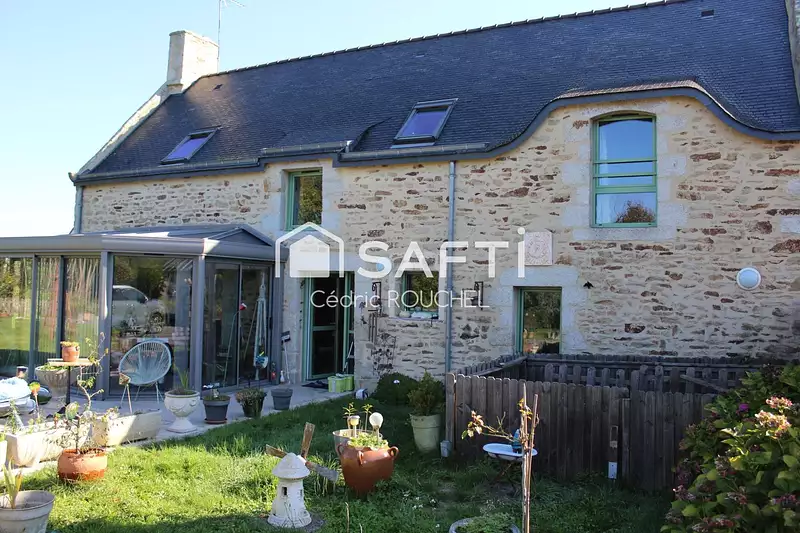 Cette Longère rénover récemment avec des matériaux de qualités de 107,17m², 150m2 utile en excellent état et rénovée avec soin, se caractérise par une clarté naturelle et une ambiance chaleureuse.Le tout a 3 km de la nationale 165 . Le rez-de-chaussée comprend un salon-séjour cuisine de 53m², une chambre et une salle de douche ainsi qu’une véranda très récente ,tandis que l'étage propose trois chambres supplémentaires et une salle de bain. Les 2 toilettes et les 2 salles de bain offrent un confort optimal pour toute la famille. Avec des matériaux de qualité tels que la toiture en ardoise et les murs en pierre, cette maison représente un havre de paix à la campagne.