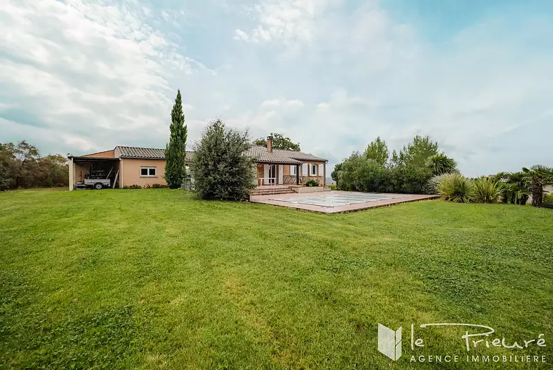 EN EXCLUSIVITÉ ! Puygouzon, située dans un cadre calme et paisible, découvrez cette charmante maison de plain-pied d'environ 110 m² + buanderie de 11,5 m² (surface de référence indiquée selon le diagnostic de performance énergétique - DPE. surface au sol de 195 m²) avec terrasse et piscine, sur un terrain constructible de plus de 2 490 m². Dès l'entrée, un hall vous accueille et dessert des toilettes indépendantes, une cuisine séparée entièrement équipée, ainsi qu'un spacieux salon baigné de lumière, grâce à ses deux portes-fenêtres ouvrant sur la terrasse, la piscine, et le jardin. L'espace nuit se compose de trois chambres confortables et d'une salle d'eau. Le sous-sol complet offre un espace aménagé avec une chambre supplémentaire et sa salle d'eau privative avec toilettes, une buanderie, ainsi qu'un vaste garage de plus de 70 m² pouvant accueillir trois véhicules, avec un atelier. En complément, la propriété dispose d'un garage indépendant et d'un carport. Cette maison est équipée de fenêtres en double vitrage et d'une climatisation réversible. Le terrain, entièrement constructible, ouvre la voie à de nombreuses possibilités d'aménagement. Pour plus d'informations, n'hésitez pas à nous contacter.