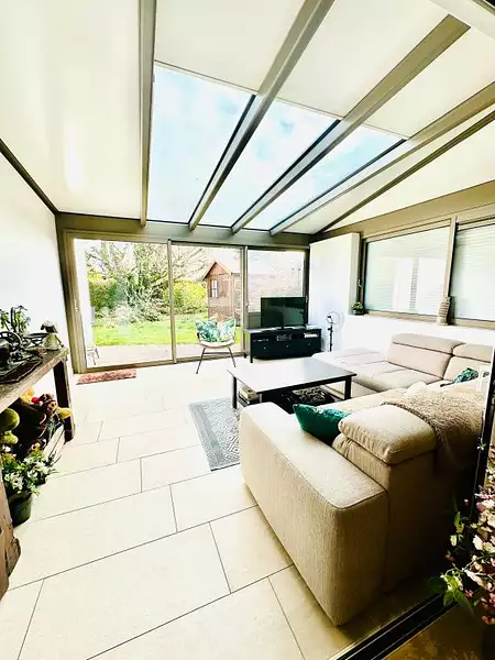 L'agence ORPI ELLA vous propose en "EXCLUSIVITE" un pavillon individuel 5 pièces, 3 chambres, de Plain-pied de type "IRIS", modifié avec véranda sur un terrain de 544m². Entièrement refaite (fenêtres double vitrages PVC, volets PVC, chauffage pompe à chaleur, électricité, sols, peintures, cuisine neuve...).