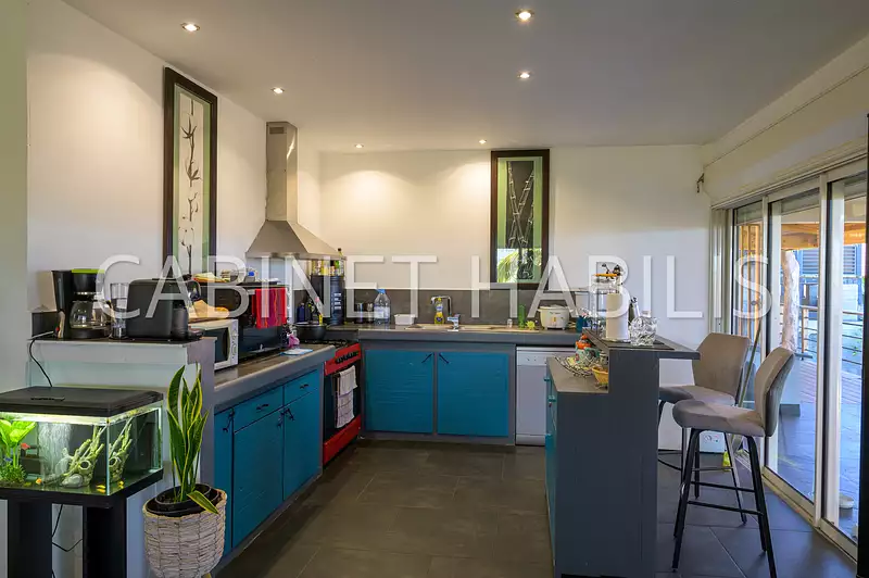 La villa dispose d'une surface totale d'environ 210 m2, dont 110 m2 habitables, offrant un cadre de vie exceptionnel avec un potentiel certain. A l'intérieur, vous trouverez un séjour convivial, une cuisine équipée, trois chambres confortables, deux salles de bains modernes et un WC séparé.