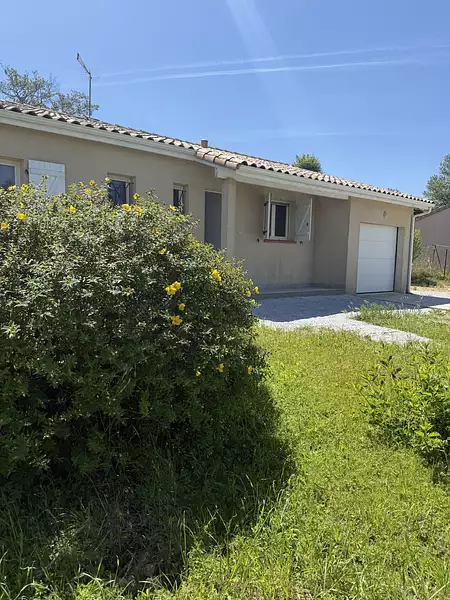 Au calme dans une impasse trés agréable maison type 4 de plain pied de 110m² avec veranda de 20m² et garage attenant sur une parcelle clôturée de 832m².Cette habitation comprend une piece de vie séjour/cuisine entierement équipée donnant sur une véranda,3 chambres,1 salle d'eau,1 WC et un garage -Sans mittoyenneté -