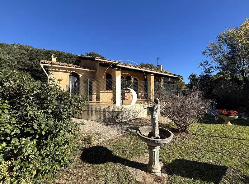 Située dans un charmant village prisé à seulement quelques minutes d'Uzès, cette maison des années 80 offre un cadre de vie paisible et un panorama exceptionnel sur les vignes et la campagne environnante. Édifiée sur un terrain clos et arboré de 1 200 m², entièrement piscinable, la propriété se distingue par son exposition plein sud qui lui confère une luminosité généreuse tout au long de la journée. L'architecture surélevée permet de profiter pleinement de la vue dégagée, depuis la terrasse baignée de soleil qui prolonge naturellement les espaces de vie. L'intérieur, d'une surface habitable d'environ 110 m² de plain-pied, présente une distribution fonctionnelle et agréabl : Le vaste séjour, chaleureux et lumineux, s'organise autour d'une cheminée en pierre qui invite aux soirées conviviales d'hiver. La cuisine, indépendante et entièrement équipée, offre de beaux volumes et un accès pratique vers l'extérieur, idéale pour les repas d'été sur la terrasse. La partie nuit se compose de trois chambres confortables, d'une salle de bains et de toilettes indépendantes. L'ensemble est complété par un garage fermé, un espace de rangement et des possibilités d'aménagement selon les besoins. Côté confort, la maison est équipée d'une pompe à chaleur assurant un chauffage économique et performant, ainsi que d'un ballon d'eau chaude électrique récent. Le bâti, solide et bien entretenu, offre un excellent potentiel pour une mise au goût du jour tout en conservant le charme de la construction traditionnelle. Dans un environnement calme, sans vis-à-vis, cette propriété séduira les amateurs d'authenticité et de nature, à la recherche d'une résidence principale ou secondaire proche d'Uzès, au cœur du Gard provençal. Une propriété sélectionnée par l'agence Botella immobilier. Honoraires de l'agence à la charge du vendeur. Les informations sur les risques auxquels ce bien est exposé sont disponibles sur le site Géorisques. Votre conseiller LEBLANC Nils au 06.03.54.08.16 EI immatriculé 940 828 924 au RSAC de Nîmes.REF ...