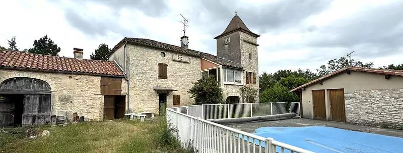 - Une maison d'habitation avec pigeonnier composée d'un salon / SAM avec cheminée, un coin cuisine , une salle de bain, une chambre et un wc séparé.