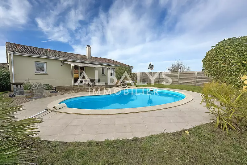 Découvrez cette belle maison contemporaine sur la commune de Vayres, idéale pour une famille, située au calme d’une impasse, à moins de 15 minutes de la rocade de Bordeaux. Elle se compose de : 3 chambres, dont une suite parentale avec un spacieux dressing, Une pièce de vie lumineuse ouverte sur le jardin, Une piscine parfaitement intégrée à un jardin arboré. La maison est en excellent état, sans travaux à prévoir. Vous n’aurez plus qu’à poser vos valises ! Un bien rare sur le secteur, alliant confort, tranquillité et proximité des grands axes.