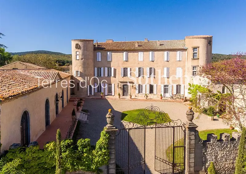 EN EXCLUSIVITE : Ce château XVIème au cœur du Minervois, vous accueille dans 1700 m² dont environ 1000 m² habitables et possède 110 hectares de bois et de landes. Cette splendide propriété dispose de 13 chambres en 3 habitations reliées, plus 1 salle médiévale et 1 salle voûtée. Une Orangerie magnifiquement rénovée de près de 400 m², 1 Chapelle aménagée et 2 ramonétages dont 1 maison de gardien encadrent sa superbe cour d’honneur. Une architecture élégante et des matériaux nobles : bois, pierre, marbre de Caunes, côtoient harmonieusement certaines rénovations contemporaines.