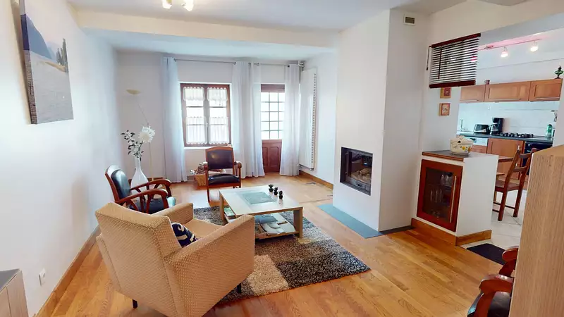 Elle se situe en plein centre d'Ambutrix, à proximité de la mairie et de l'école, au RDC vous retrouvez une grande cuisine équipée indépendante, une première salle d'eau, un wc indépendant et un séjour cocoon avec une belle cheminée et un superbe escalier.
