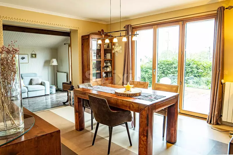 Le sous-sol complet de 110 m² offre un grand garage, une buanderie, une cave, un atelier et un espace aménagé avec salle d’eau, idéal pour un studio ou un bureau. La maison est équipée d'une pompe à chaleur pour un confort optimal, ainsi que de menuiseries en double vitrage bois/aluminium.
