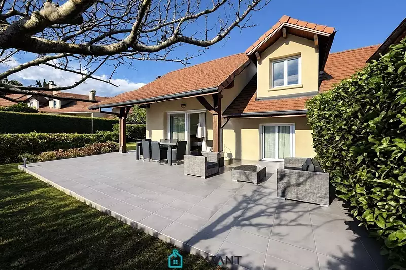 Venez découvrir cette agréable villa mitoyenne de 111 m² habitables (125 m² utiles) édifiée sur un terrain de 521 m², idéal pour une famille à la recherche d'un environnement calme et bien situé. Elle se compose d'un hall d'entrée, un cuisine équipée ouverte sur le salon / salle à manger offrant une belle pièce de vie conviviale avec accès terrasse, une chambre avec salle de douche privative, un WC séparé. A l'étage trois chambres salle de bains et un WC séparé. En annexes un garage avec mezzanine parfait pour du rangement supplémentaire et une buanderie. Cette villa bénéficie d'un emplacement recherché, à proximité immédiate des écoles et d'un arrêt de bus facilitant le quotidien. A visiter rapidement !! Prix TTC et Honoraires à charge vendeur TTC Agent commercial Sextant France - Franck Baldi agent basé à DIVONNE LES BAINS - 06 07 76 70 30 - Plus d'informations sur réf. 26585