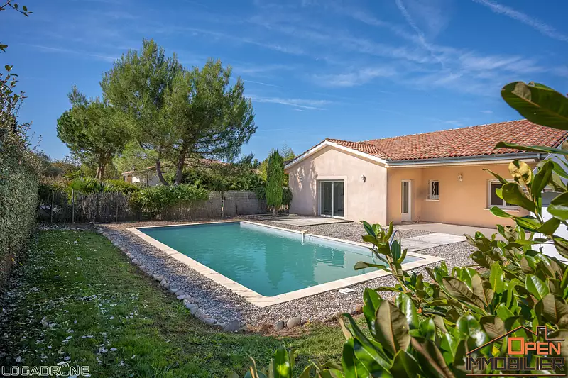 Nicolas Serre Open Immobilier vous propose cette villa de plain-pied d'une surface totale 125 m2 avec garage, une piscine 10/5 sur une parcelle d'environ 1250 m2.