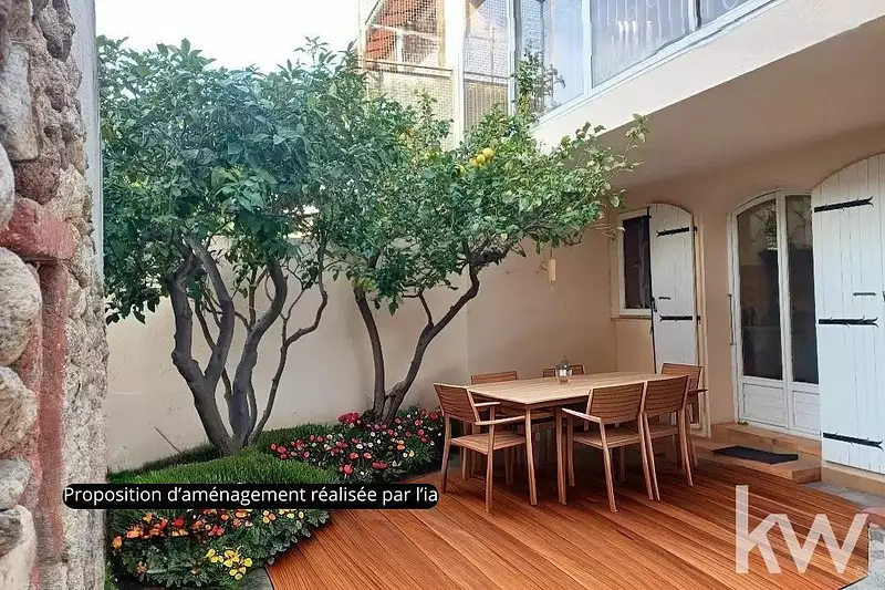 Maison de 111 m² habitables (130 m² utiles) avec grand garage et jardin, située à Saint-Genis-des-Fontaines.