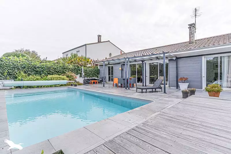 CAUDERAN : Vous trouverez cette maison familiale de plain-pied dans un secteur calme, proche des commodités et des transports. Lumineuse avec son salon-séjour ouvert sur l'extérieur avec sa piscine pour passer de bon moments en famille. Une cuisine équipée donnant sur le garage. Côté nuit, 3 chambres, leur pièce d'eau et un bureau.