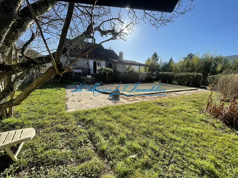 Maison sur 2 niveaux de 5 pièces, située sur un terrain arboré de 1500 m2 avec piscine.