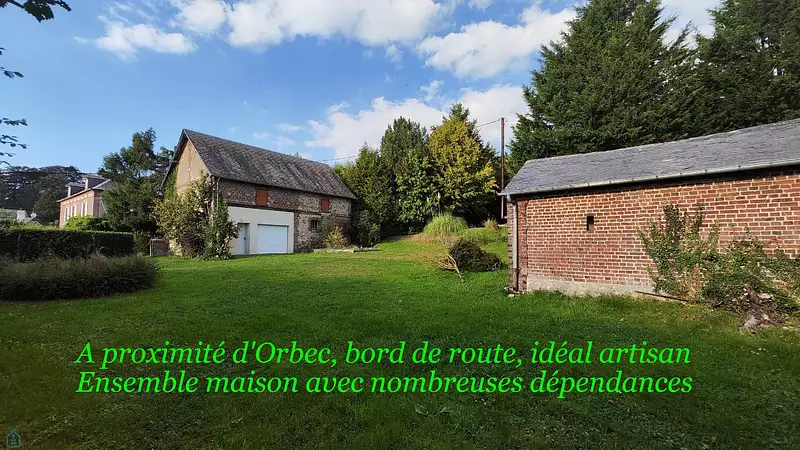 A 2 pas d'Orbec (petite ville tous commerces), 20 min de Lisieux et 20 min de Bernay (gares), cette jolie propriété, sur un terrain de 3866 m² clos et arboré, vous offre une maison de maître et de nombreuses dépendances en bel état. La maison principale, avec travaux à prévoir, propose de beaux volumes dont une cuisine de 18 m², une séjour-salon de 40 m² avec cheminée, 3 grandes chambres dont une avec salle d'eau, bureau, 2 wc et grenier aménageable. Chaufferie attenante. 3 belles dépendances dont une en silex et brique abritant un garage, 2 autres pièces et grenier sur le dessus, un autre bâtiment en briques composé de 2 pièces et d'un appentis attenant et un grand hangar agricole de plus de 150 m² avec grenier sur la totalité. le terrain est agréablement aménagé et arboré. Un petit sous bois fera la joie des enfants. Cette propriété est idéale pour votre projet de gîtes, pour vous, artisan ou pour votre projet familial. Honoraires TTC charge vendeur Agent commercial Sextant France - Déborah Dutot agent basé à COURTONNE LES DEUX EGLISES - 07 80 31 17 09 - Plus d'informations sur réf. 21570