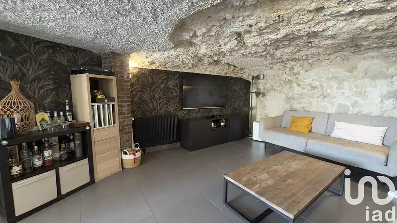 Elle offre un double séjour lumineux, comprenant un salon troglodyte plein de caractère, une cuisine ouverte et équipée, un WC séparé, une buanderie ainsi qu’une cave.