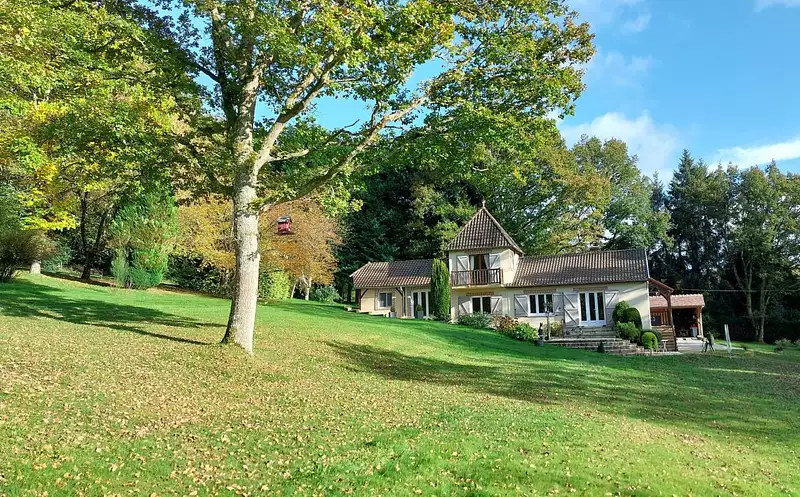 Région Abbaye de La Trappe, 15 kms de la gare, lumineuse maison en parfait état comprenant une entrée, un séjour et salon avec cheminée insert et belle ouverture sur terrasse, une cuisine aménagée et équipée, une buanderie, une chambre et dressing, salle d'eau, wc, une suite parentale avec dressing, salle d'eau et wc, un bureau. A l'étage une chambre avec son balcon dominant le jardin. Cave en sous sol. Assainissement neuf, doubles vitrages récents TRYBA, Dépendance en bois, double garage. Autre maisonnette de jardin. L'ensemble sur 5000 m² arboré de vieux arbres avec portail électrique. Sans aucune nuisance. AGENCE BENOIST ORPI 02 33 25 41 23
