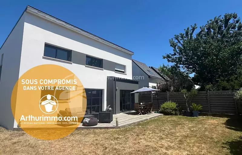 Pluneret- maison 4 chambres contemporaine 112m² habitable sous compromis- arthurimmo auray maison familiale avec garage - 4 chambres, mezzanine et jardin - mériadec située dans un environnement paisible et résidentiel, à seulement 10 minutes de vannes et d'auray, cette maison individuelle de 112 m² habitables allie confort moderne et fonctionnalité familiale. elle se compose de : une pièce de vie spacieuse et baignée de lumière, avec cuisine attenante, un chauffage au sol au rez-de-chaussée pour un confort optimal, une suite parentale de plain-pied avec salle d'eau privative, trois chambres déplafonnées à l'étage, offrant de beaux volumes, une mezzanine polyvalente idéale pour un bureau ou un espace détente, une salle de bains familiale et un wc à chaque niveau. les plus : un grand garage attenant et buanderie, de nombreux rangements, prestations d'isolation et confort énergétique, jardin intimiste dans un cadre calme. une maison chaleureuse et fonctionnelle, pensée pour la vie de famille, offrant une véritable vie de plain-pied et des volumes généreux à l'étage. pour venir découvrir cette maison contactez maxime brouxel au 06 49 74 57 46 arthurimmo vente - expertise - estimation - location -