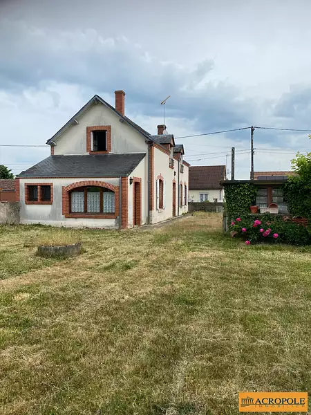 A l'étage deux chambres, une salle de bains avec WC sur un terrain fleurie clos de 792 m² avec garage, dépendances, cave et puits en eau.