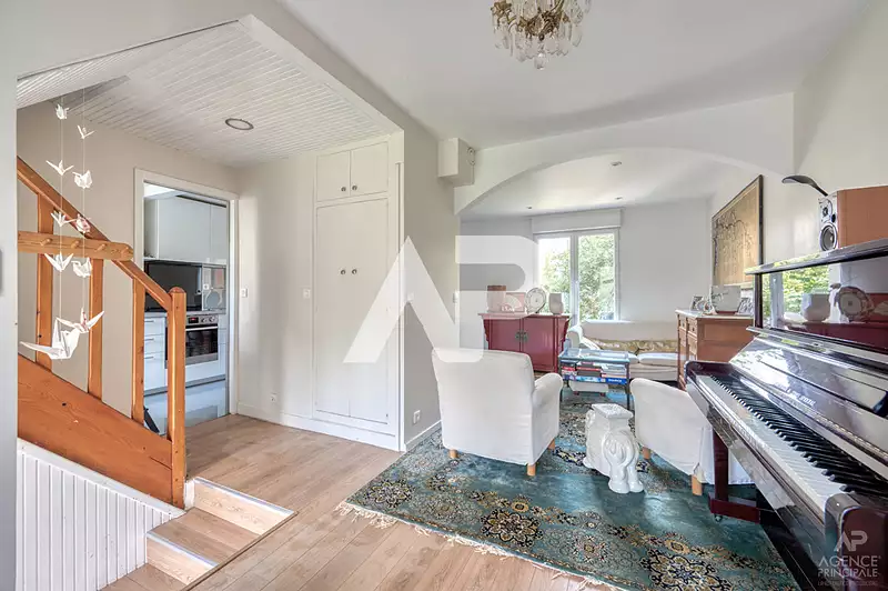 RUEIL-MALMAISON - PLAINE GARE / TUCK STELL. Idéalement située à deux pas du centre-ville, des commerces, des écoles et du RER, cette maison familiale d'environ 112 m² habitables, bâtie sur une parcelle d'environ 133 m², offre un cadre de vie agréable et fonctionnel dans un secteur calme et recherché. Elle se compose, au rez-de-chaussée, d'une entrée, d'un espace de vie lumineux de 34 m² exposé Sud-Est avec cuisine ouverte donnant sur le jardin. A l'étage, un palier dessert trois chambres (9m², 10m² et 10m²), une salle d'eau et des toilettes séparées. Le rez-de-jardin accueille une quatrième chambre d'environ 19 m², une buanderie et une salle de bains. En bon état général, cette maison séduit par sa distribution optimisée et sa situation privilégiée. Collège: MARTINETS/ Maternelles et élémentaires: TUCK STELL. AP/APA - 01.47.10.01.01