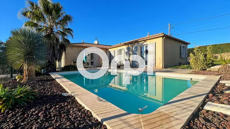 Maison de type 5 de plain pied, située dans le charmant village de Vendémian, construite en 2008 elle offre un cadre de vie idéal, avec ses 4 belles chambres, son salon accueillant, sa cuisine américaine et son îlot. Une belle terrasse entoure la piscine laissant présager de belles soirées d'été.