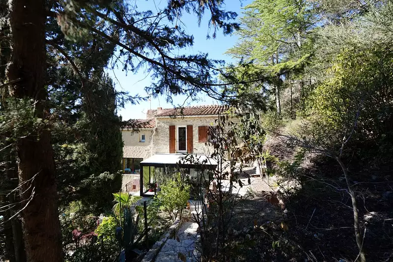 Maison de village 112 m², sur quatre niveaux, jardin paysagé de 700 m² , séjour, véranda, cuisine équipée et aménagée, trois chambres dont deux avec mezzanines, deux salles d'eau, bureau, cellier, atelier.