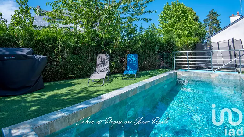 Le magnifique jardin arboré de 570m², exposé à l'ouest, est l'endroit parfait pour des barbecues entre amis ou des après-midi de jeux en famille. Une piscine vous permettra de vous rafraîchir lors des chaudes journées estivales, tandis qu'un espace de stationnement privé vous garantira praticité et sécurité au quotidien.