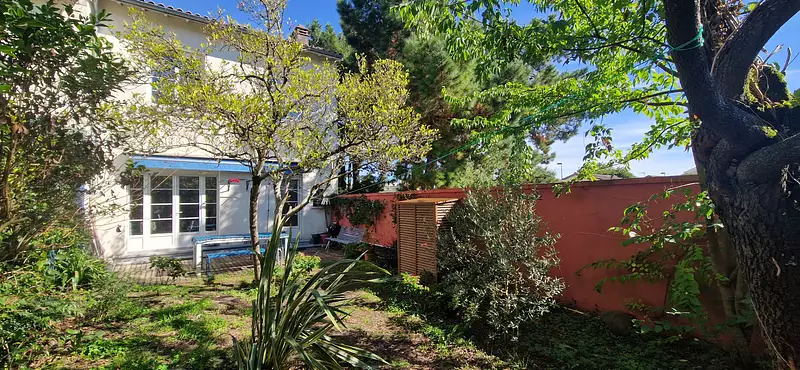 À proximité immédiate du Tram A et de toutes commodités, maison lumineuse de 113 m2 aux beaux volumes et belle hauteur sous plafond, avec jardin clos et arboré.