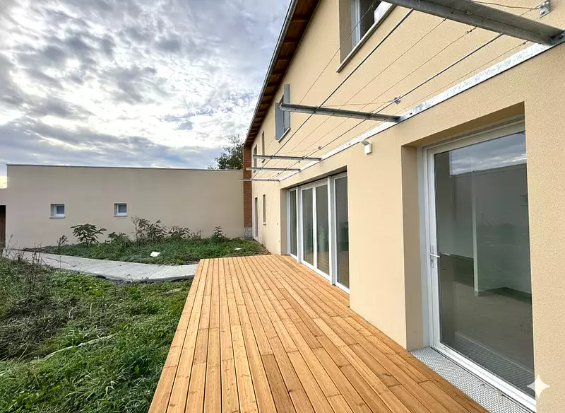 Maison 5 pièces de 113m² sur 2 niveaux avec terrasse en bois + grand jardin sans vis-à-vis de 212m² + garage de 20m², située dans une petite résidence intimiste au coeur d'un quartier vivant et recherché de PIBRAC. -Spacieux séjour lumineux disposant de grandes baies vitrées ouvert sur cuisine, le tout le tout donnant sur 212m² de terrasse et jardin sans vis-à-vis. -4 grandes chambres avec placards dont une suite parentale avec salle d'eau privative en RDC. -Salle de bain avec double vasque / sèche serviettes / WC. -Salle d'eau en RDC avec WC. -Grand garage de 20m² + place de parking. -Terrain piscinable. PRESTATIONS: Peinture lisse. Carrelage grès 45x45. Parquet stratifié dans les chambres. Placards aménagés. Salles de bains équipées. Sèche serviettes. Volets roulants électriques. Chauffage: pompe à chaleur air/air pour les villas. Panneaux solaires en autoconsommation. Jardins privatif engazonné et clôturé. Terrain piscinable. TRANSPORTS ET ACCES : N124 sortie n°7 à 1,4 km Gare de Pibrac à 3,6 km Bus Tisséo n°32, arrêt Stade à 1,9 km Métro, future 3ème ligne ? Toulouse Aerospace Express ' station Gare de Colomiers à 6 km Aéroport Toulouse-Blagnac à 14 km COMMERCES : Supermarché Super U et Drive à 750 m Station-service à 600 m Pharmacie de Bouconne à 2 km Centre médical en face de la résidence Centre médical Pibrac à 2,4 km Banque à 550 m ENSEIGNEMENT : Crèche Mélimélo à 3,5 km Groupe scolaire Maurice Fonvieille à 2 km Collège du Bois de la Barthe à 3,5 km Lycée général et technologique Nelson Mandela à 2 km Ecole et collège privé de La Salle à 2,9 km Maxime FONTENELLE LES CLEFS TOULOUSAINES