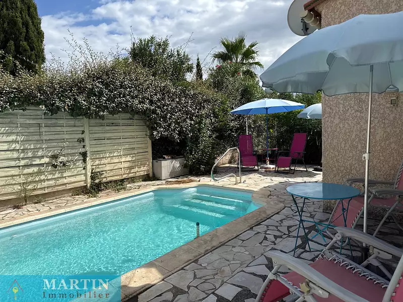 À l'étage : 4 chambres confortables. Une salle d'eau avec WC. Confort et prestations de qualité : Climatisation réversible pour un confort optimal toute l'année. Volets roulants électriques pour une sécurité et un confort accru. Double vitrage pour une isolation phonique et thermique performante. Chauffage solaire pour des économies d'énergie. Extérieur :Terrain de 415m2 agrémenté d'arbres fruitiers. Piscine chauffée pour des baignades en toute saison. Forage pour l'arrosage. Avantages supplémentaires : Proximité immédiate des commerces. Emplacement idéal pour une vie paisible.